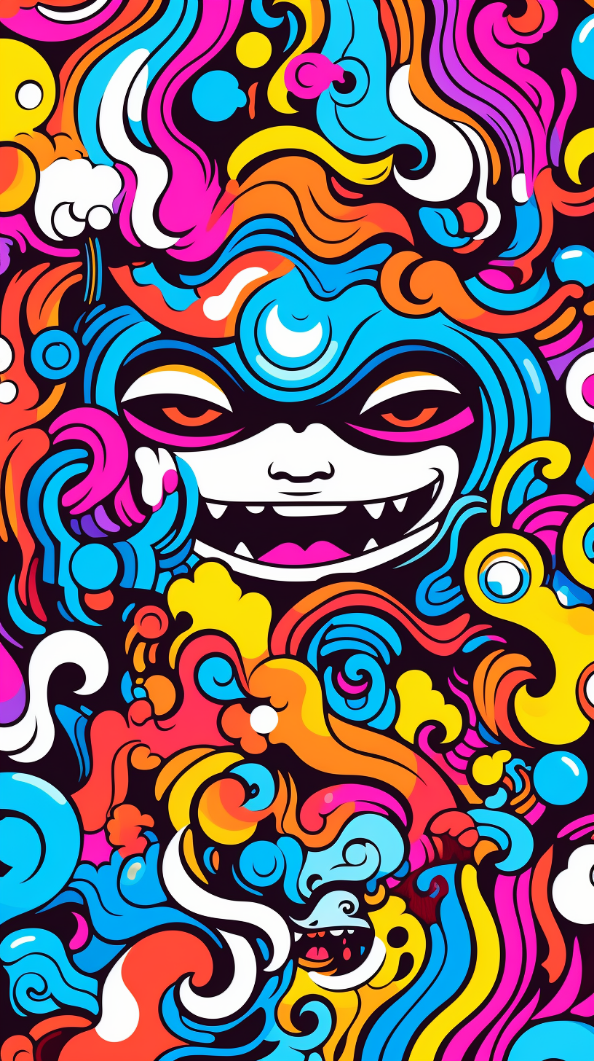 Prepare to be captivated by the psychedelic face, adorned with a contagious smile, at the center of this artwork. The swirling colors and intricate patterns will transport you to a realm where reality and fantasy intertwine, creating a visual feast for the eyes. Each time you glance at your device, you'll be greeted by a burst of vibrant energy that will uplift your mood and enrich your day.