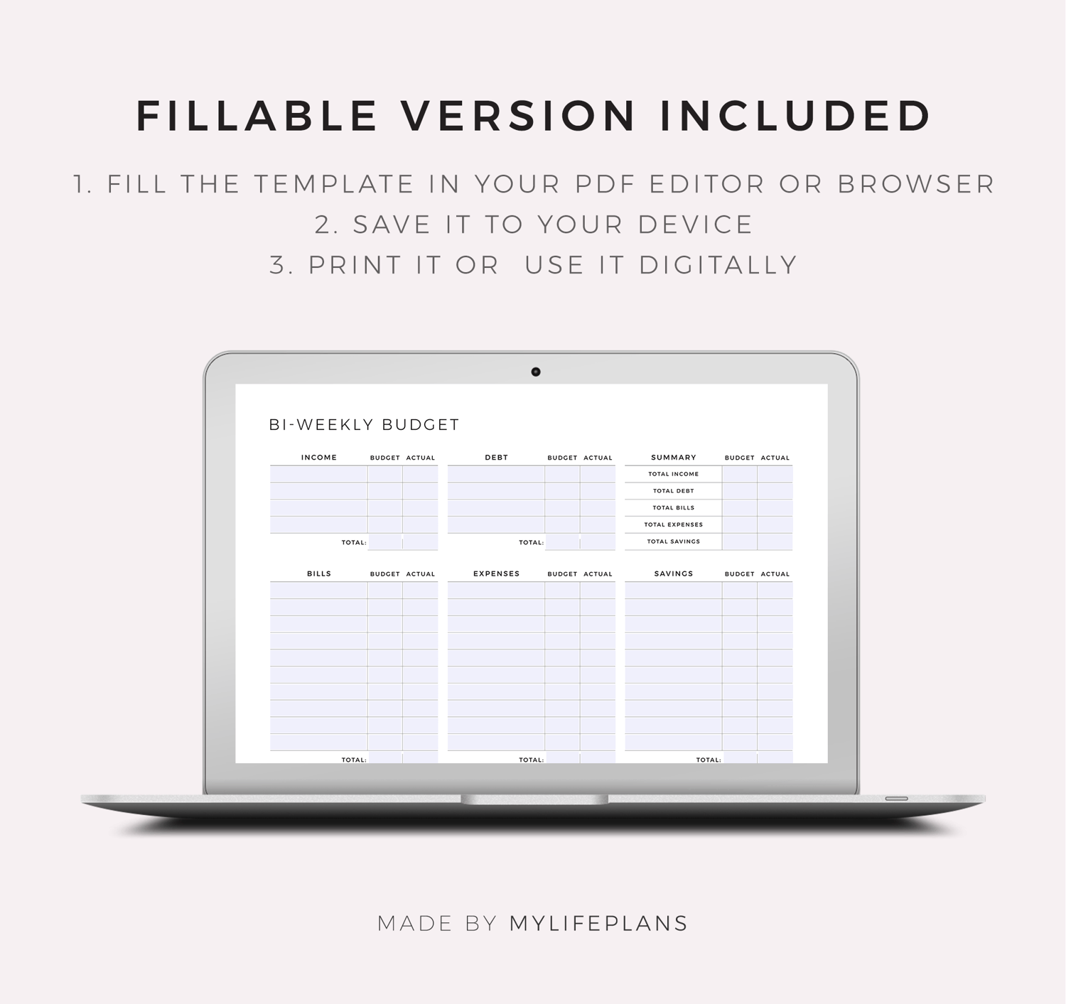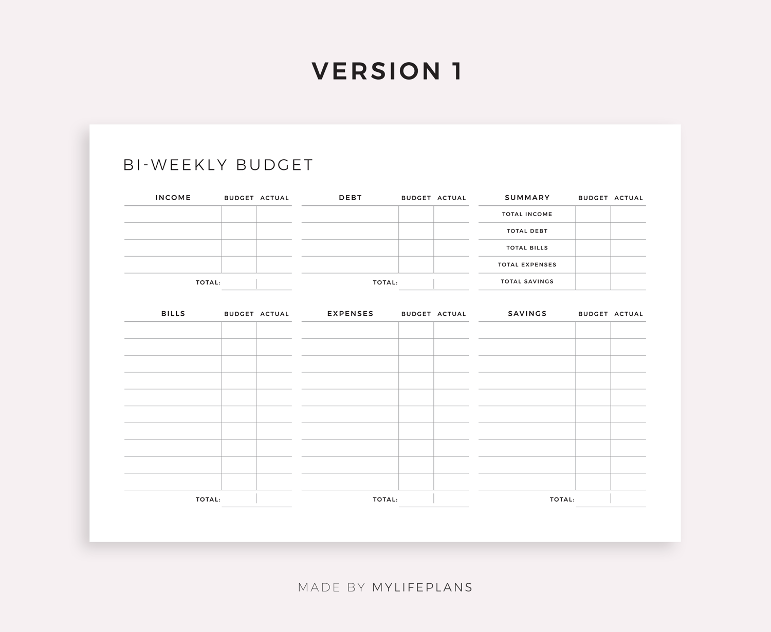 This is a printable bi-weekly budget planner — just download, print, and start using it right away.