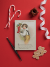 Celebrate the nostalgia of Christmas with this charming vintage postcard featuring a sweet child holding a stocking filled with holly and gifts. Accompanied by a delightful holiday rhyme, this illustration captures the warmth and joy of a traditional Christmas. Perfect for holiday-themed projects such as scrapbooking, card making, gift tags, and seasonal decor, this high-quality digital postcard brings the magic of Christmas to your creative endeavors.