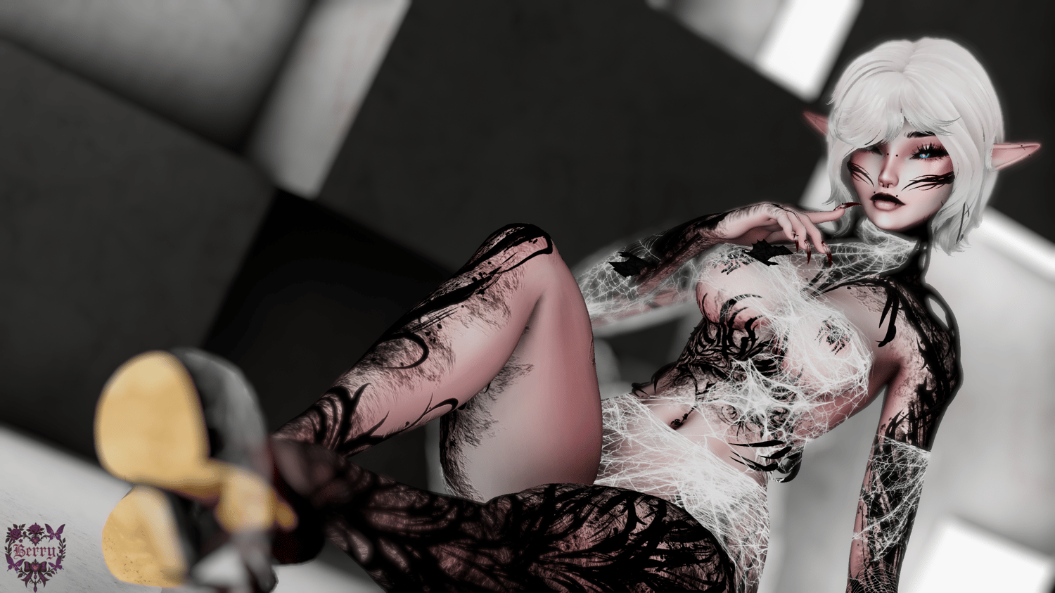 Outfits: Underworld/Tentacle Bodysuit, Web Dress+Arm Sleeves, Spider Corset+Pants, Cheerleader, Bat Outfit