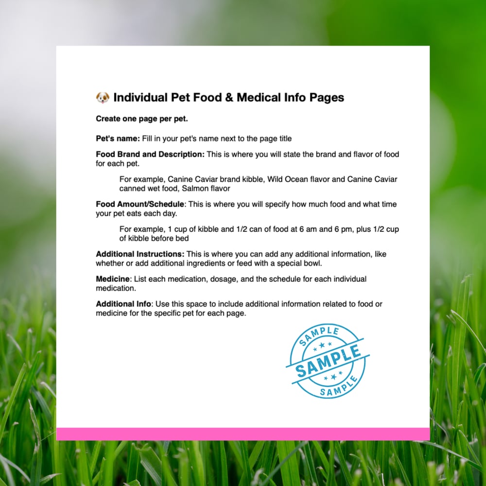 A fillable PDF binder system that ensures pet sitters, family members, or boarding facilities have everything they need to care for pets exactly the way the owner would.