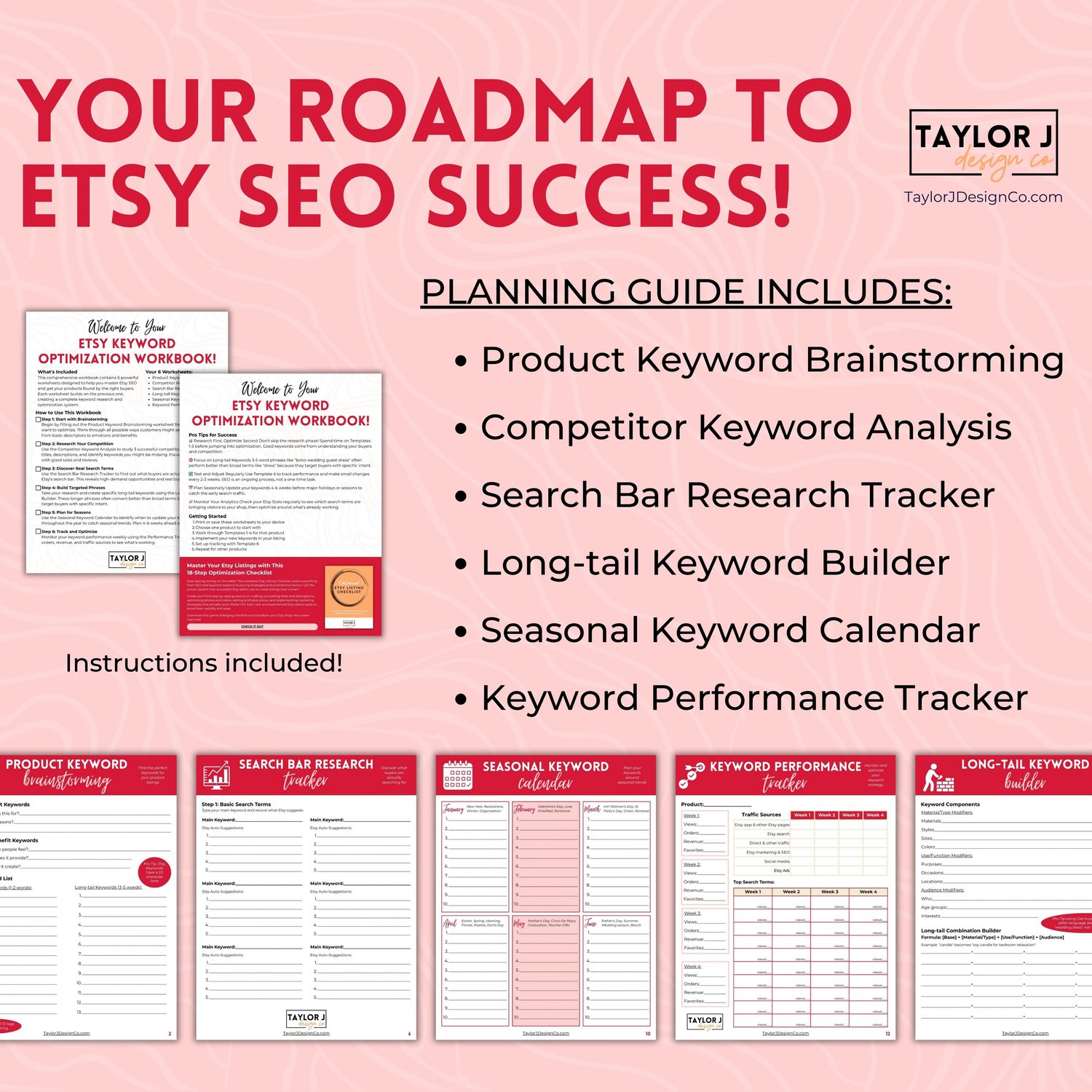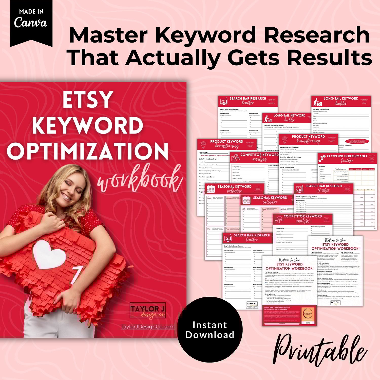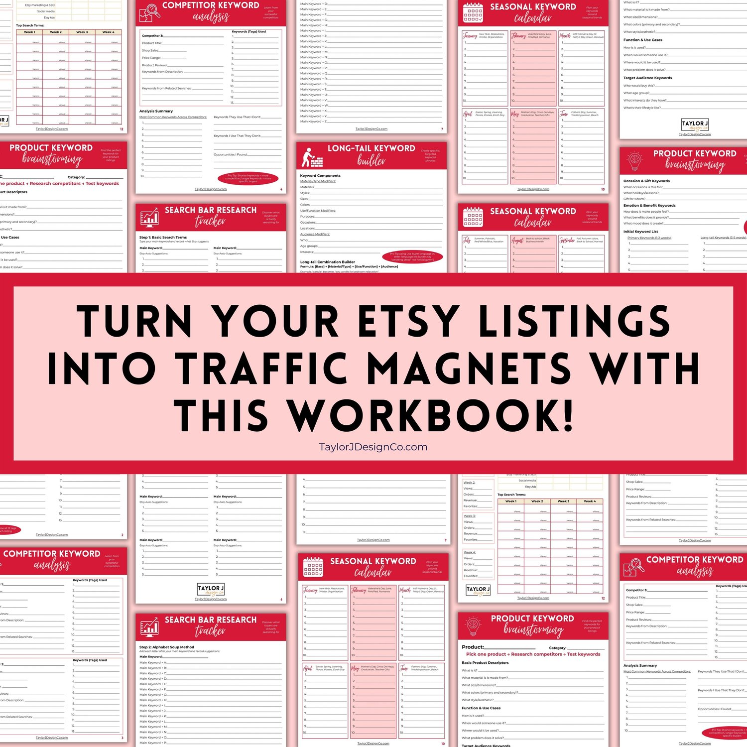 Are your amazing products buried on page 10 of Etsy search results? You're not alone! Most Etsy sellers struggle with keywords because they're missing a proven system. This comprehensive 16-page workbook changes everything.