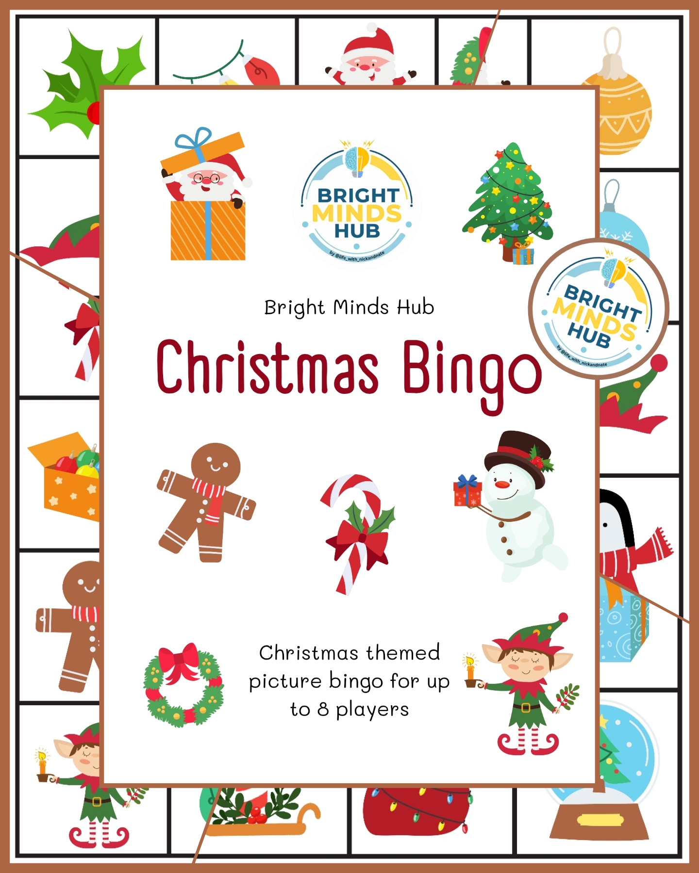 A fun picture Christmas themed Bingo to play with friends and family at Christmas parties and gatherings. Suitable for ages 2+, with sheets available for up to 8 players.