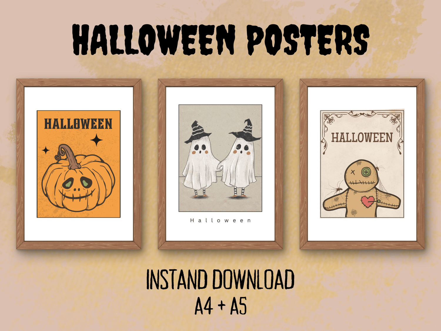 Halloween Poster Set | Pumpkin Posters, Ghost Art, Voodoo Doll Prints | A4 and A5 Printable Wall Art | Instant Download