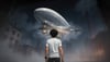 The film unfolds in a stylized world inspired by late-twentieth-century media culture, where symbols of technological progress and nostalgia coexist. One of the central visual motifs is a massive zeppelin drifting through smoky skies—a metaphor for the complex, retro-tinged media systems that shape public perception and cultural memory.