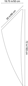 72 in/183 cm long; 19.75 in/50 cm deep from top to point; 26 in/66 cm along wide end (see schematic); length adjustable.