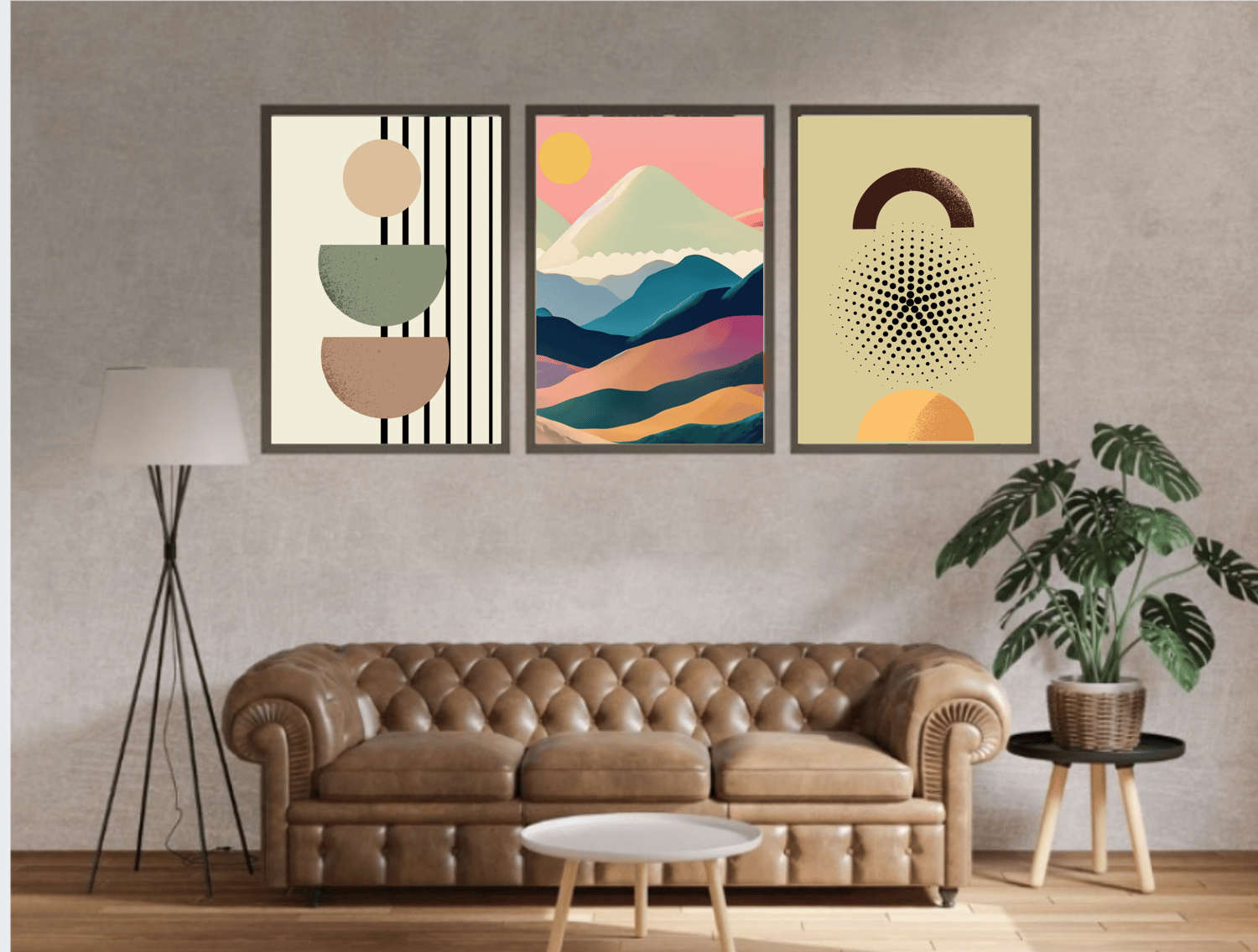 Set of 3 Earthy Color Abstract Living Room, Bedroom Printable Art Posters, Mid Century, Boho, Modern