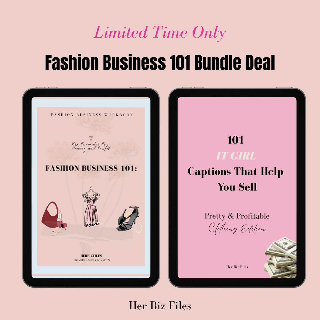 The Fashion Business 101 Bundle Deal is ideal for those who are new to the fashion industry and want a solid foundation. This bundle focuses on the essentials, understanding how a fashion business works, learning key pricing concepts, and building confidence as a beginner. It’s a great starting point if you want structure without feeling overwhelmed. You'll learn about the 7 key formula's used in the fashion industry regularly to produce profit for your brand and you'll get over 3 months worth of social media captions, that will produce sales and don't come off as salesy.