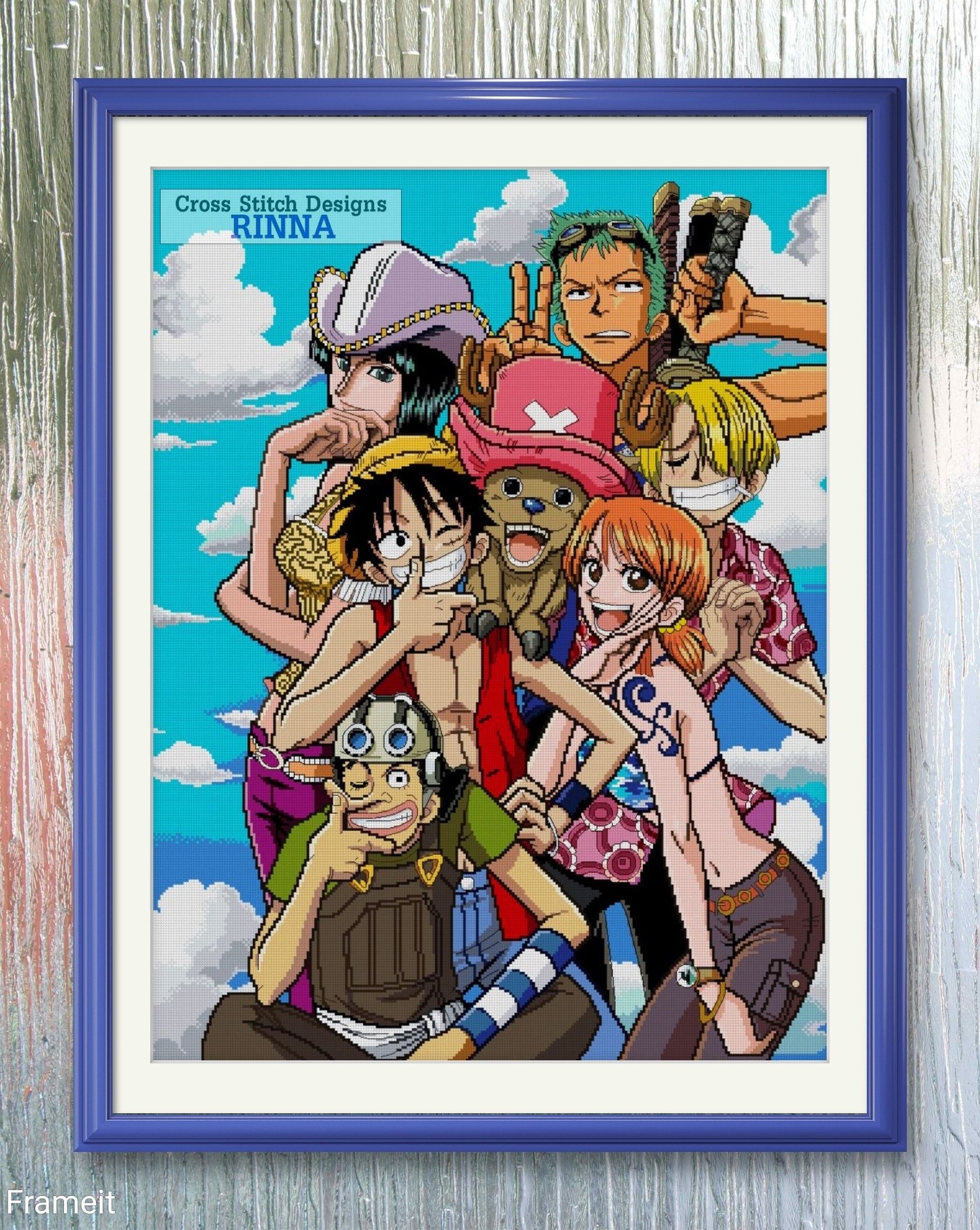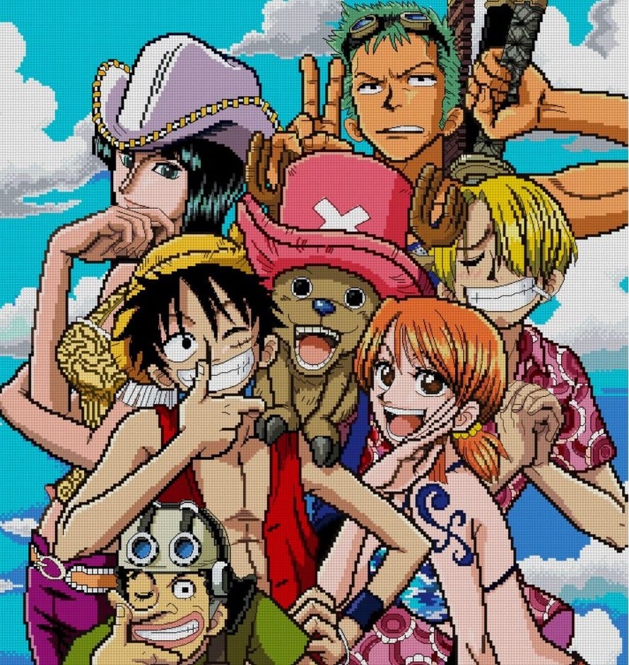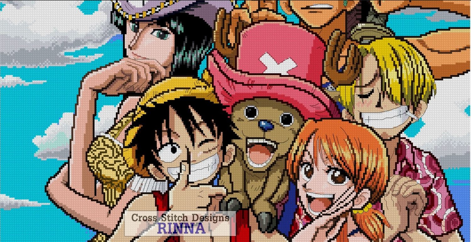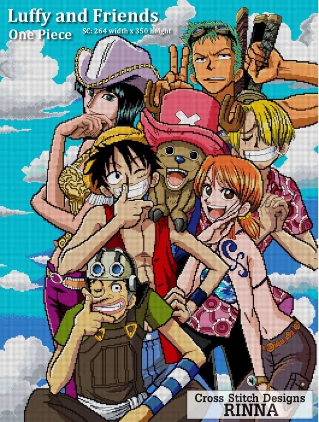 Anime Design One Piece Luffy and Friends Pirates - Cross Stitch PDF Downloadable Pattern
