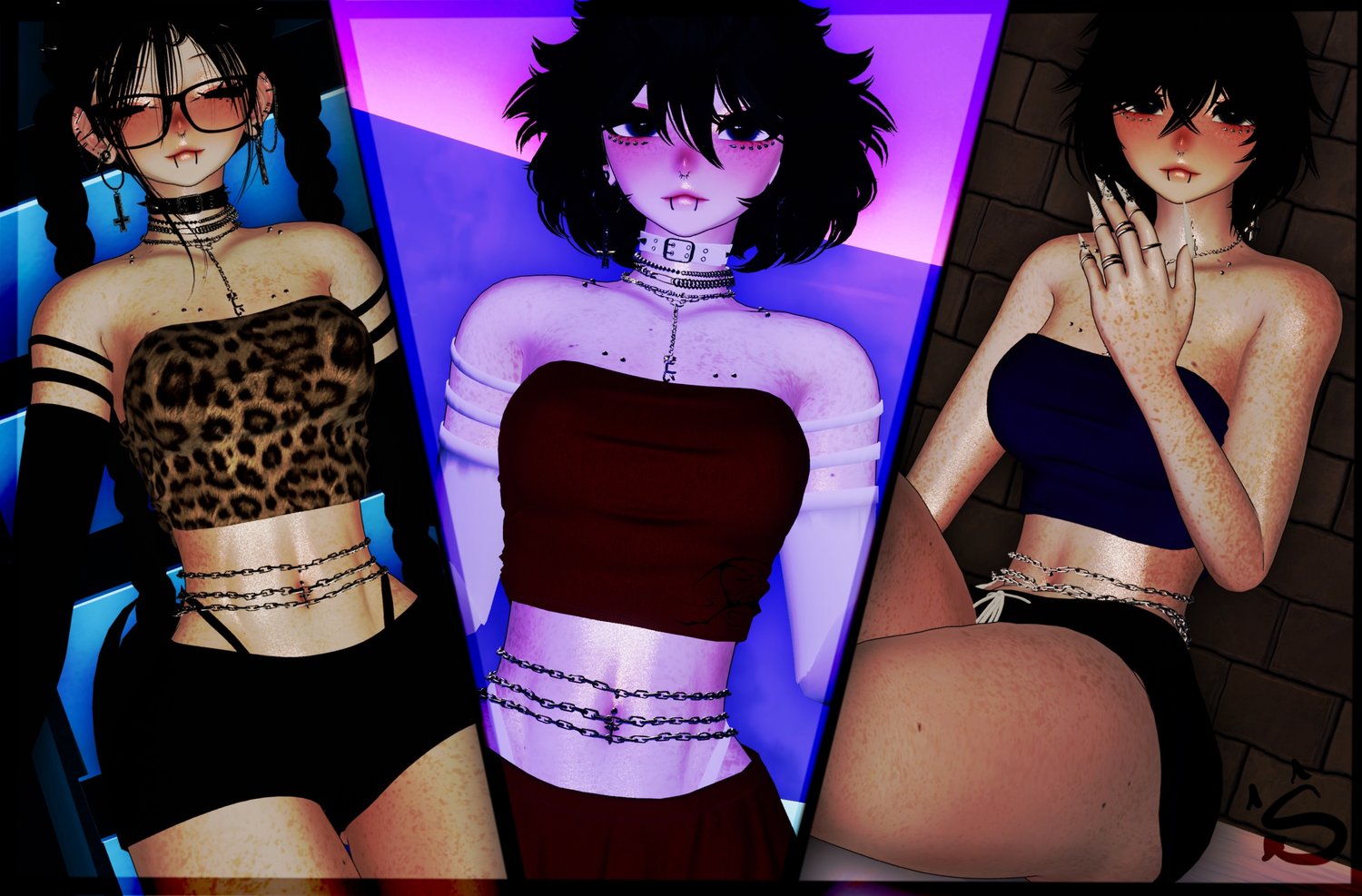 Accessories: Arm Sleeves, Chest Chain, Chokers, Glasses, Rings, Waist Chains, Body Piercings, and Face Piercings