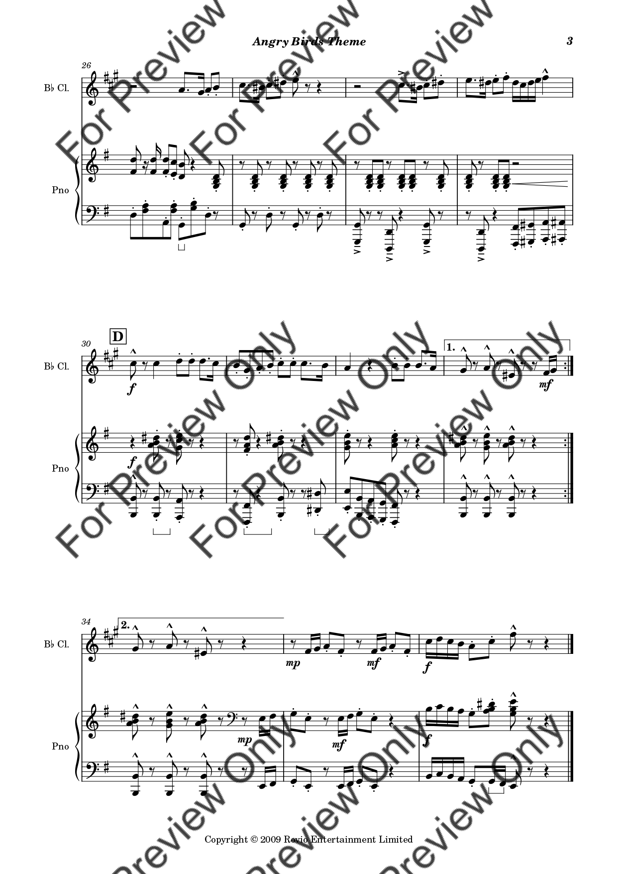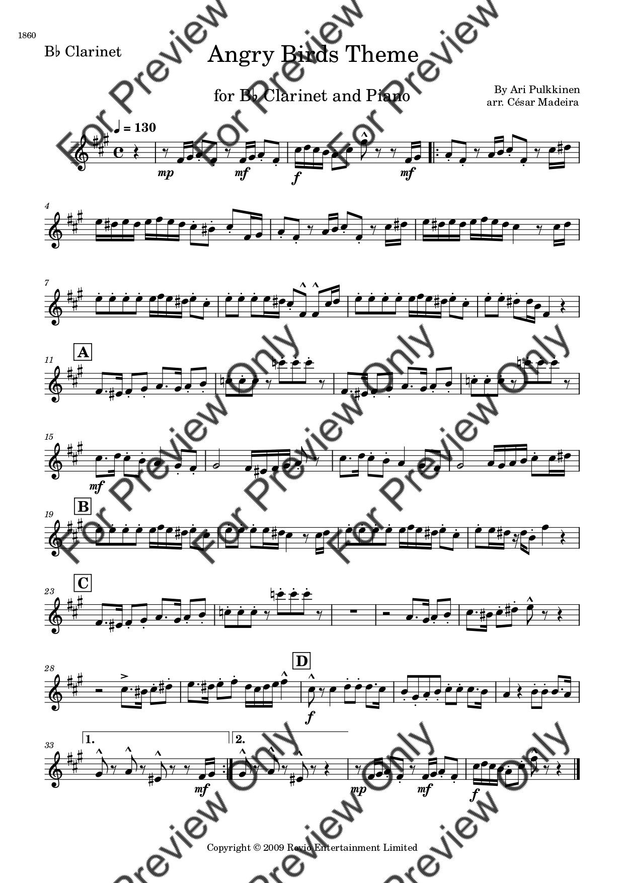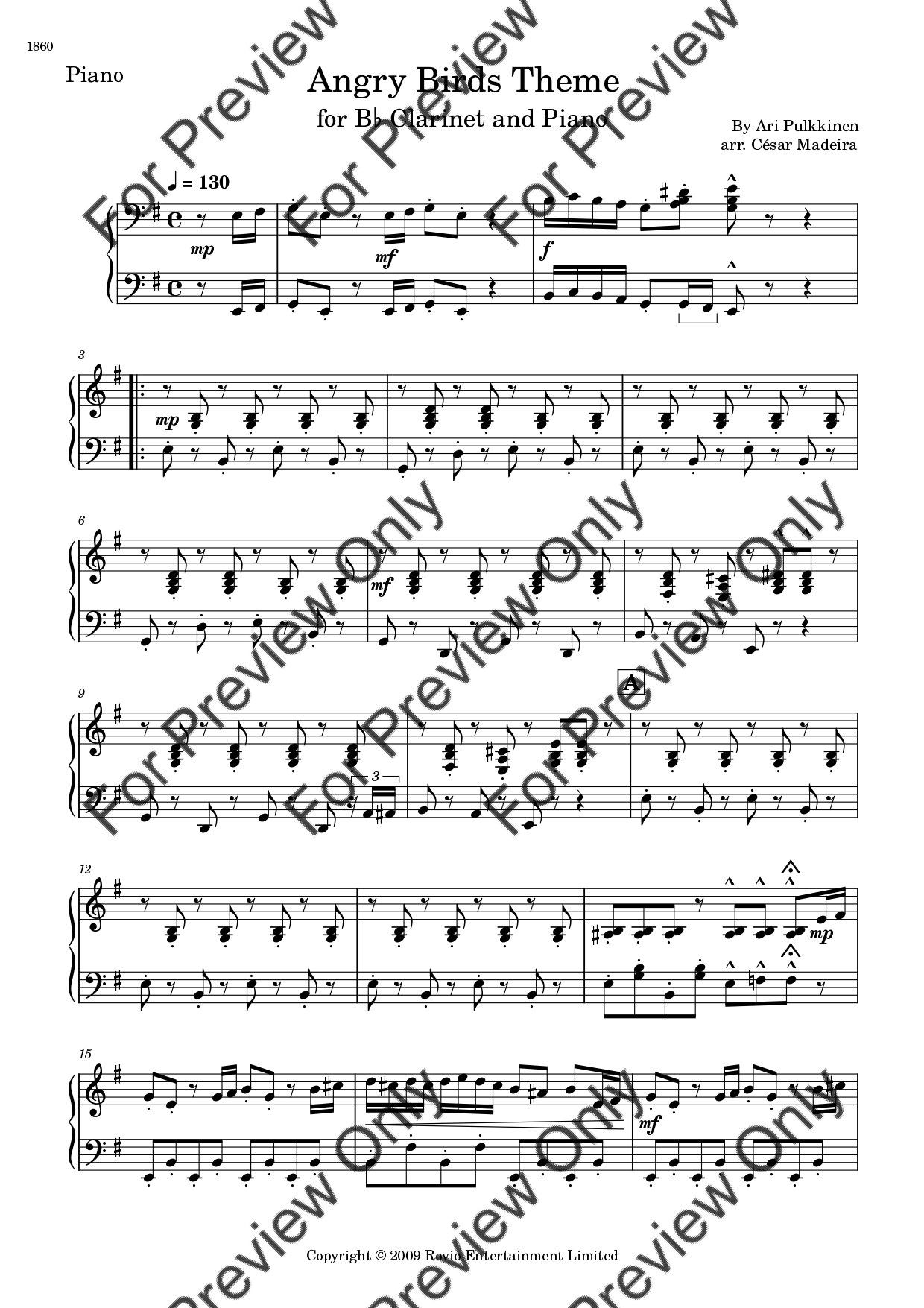 Angry Birds Theme. Arrangement for Bb Clarinet and Piano. With Full Score and Individual Parts. Have fun!