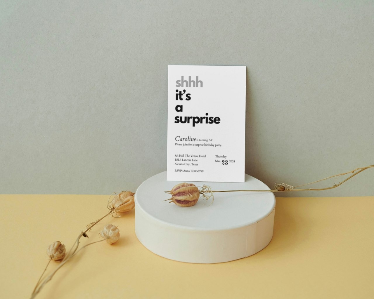 Shhh... It's a Surprise Birthday Party Invitation Minimalist Style Template