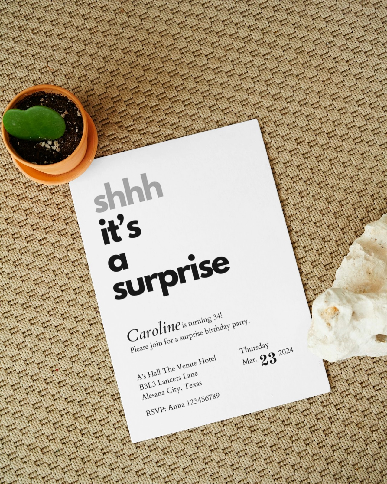 Surprise Invitation, Editable Surprise Birthday Invitation, Adult Typography Shhh its a Surprise Invite Instant Digital Download