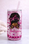 This powerful design features a bold illustrated woman with pink ribbon details, butterflies, hearts, and glitter-style accents — created to honor breast cancer warriors, survivors, and supporters.