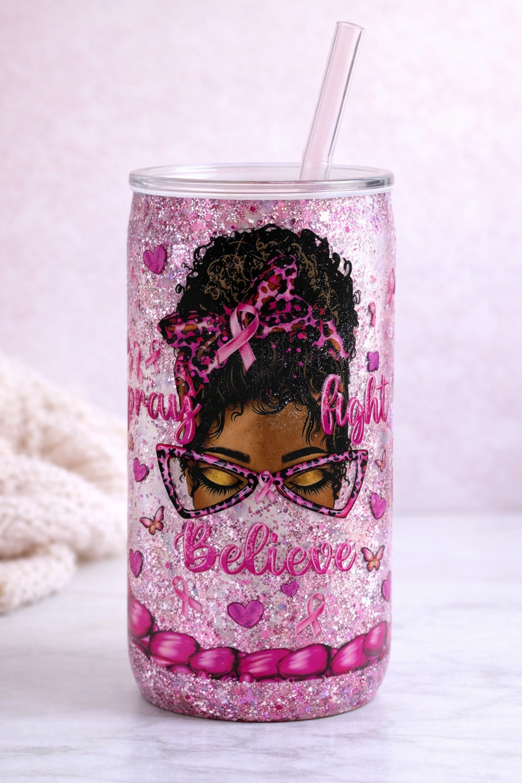 Show strength, faith, and support with this Pray • Fight • Believe UV DTF Cup Wrap