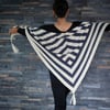 Sample is knit with Natural Fibre Arts Merino Silk Cashmere (70% Merino, 20% Silk, 10% Cashmere, 400m / 438yds - 100g) in colours Ivory (C1) and Charcoal (C2).