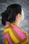 Sample is knit with Natural Fibre Arts Merino Silk Cashmere (70% Merino, 20% Silk, 10% Cashmere, 400m / 438yds - 100g) in colours Pink (C1a), Gold (C1b) and Mustard (C2).