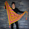 This shawl is inspired by the costumes in the TV show Outlander. The construction of the shawl is inspired by some of the shawls Claire wears in season 1, but the style and colours are inspired by the outfits Claire wore in Season 2 in Paris.