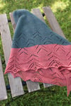 It’s a triangular shawl, easy to make, with lots of garter stitch and just enough lace to make it interesting without it being overwhelming.