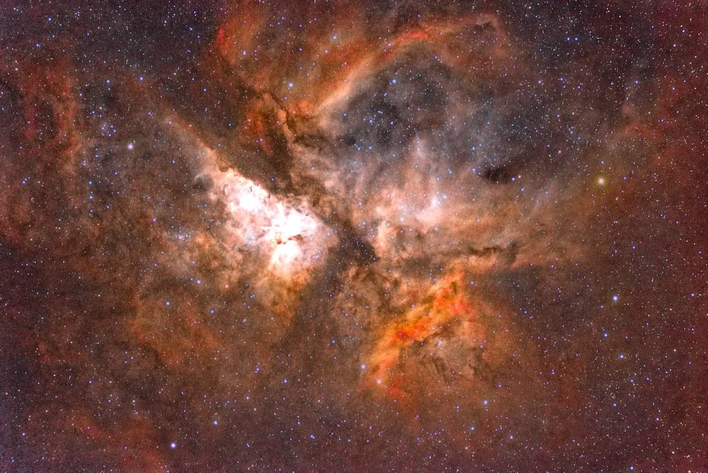 The Carina Nebula or Eta Carinae Nebula (catalogued as NGC 3372; also known as the Great Carina Nebula) is a large, complex area of bright and dark nebulosity in the constellation Carina, located in the Carina–Sagittarius Arm of the Milky Way galaxy.