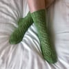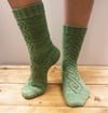 Hand knit socks are designed to be slightly smaller than the foot length to give a small amount of negative ease. This means that they will hug the foot and leg and stay in place. The sizes given are a ‘to fit’ size. The actual socks will be slightly smaller to allow a little stretch for a snug fit.