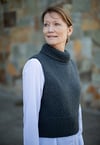 ASTORIA ~ a quick knit, cropped turtleneck vest, using two strands of Nest held together with one strand of Silk Cloud throughout. ASTORIA is worked in the round from the bottom up then divided at the armholes and worked flat to the shoulders. A deep 1 × 1 rib is worked at the hem and collar. A slipped stitch edging frames the armholes.