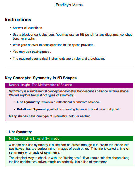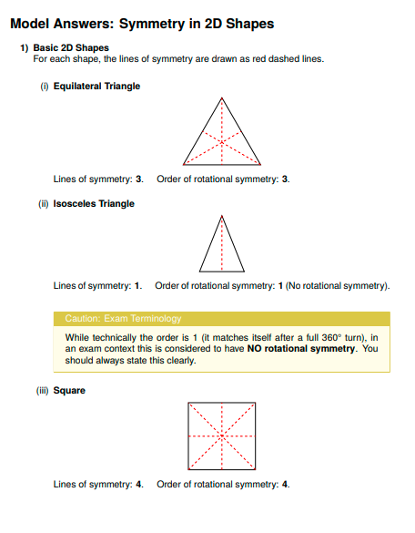 IGCSE Extended Level Maths: Symmetry in 2D Shapes (Worksheet & Model Answers)