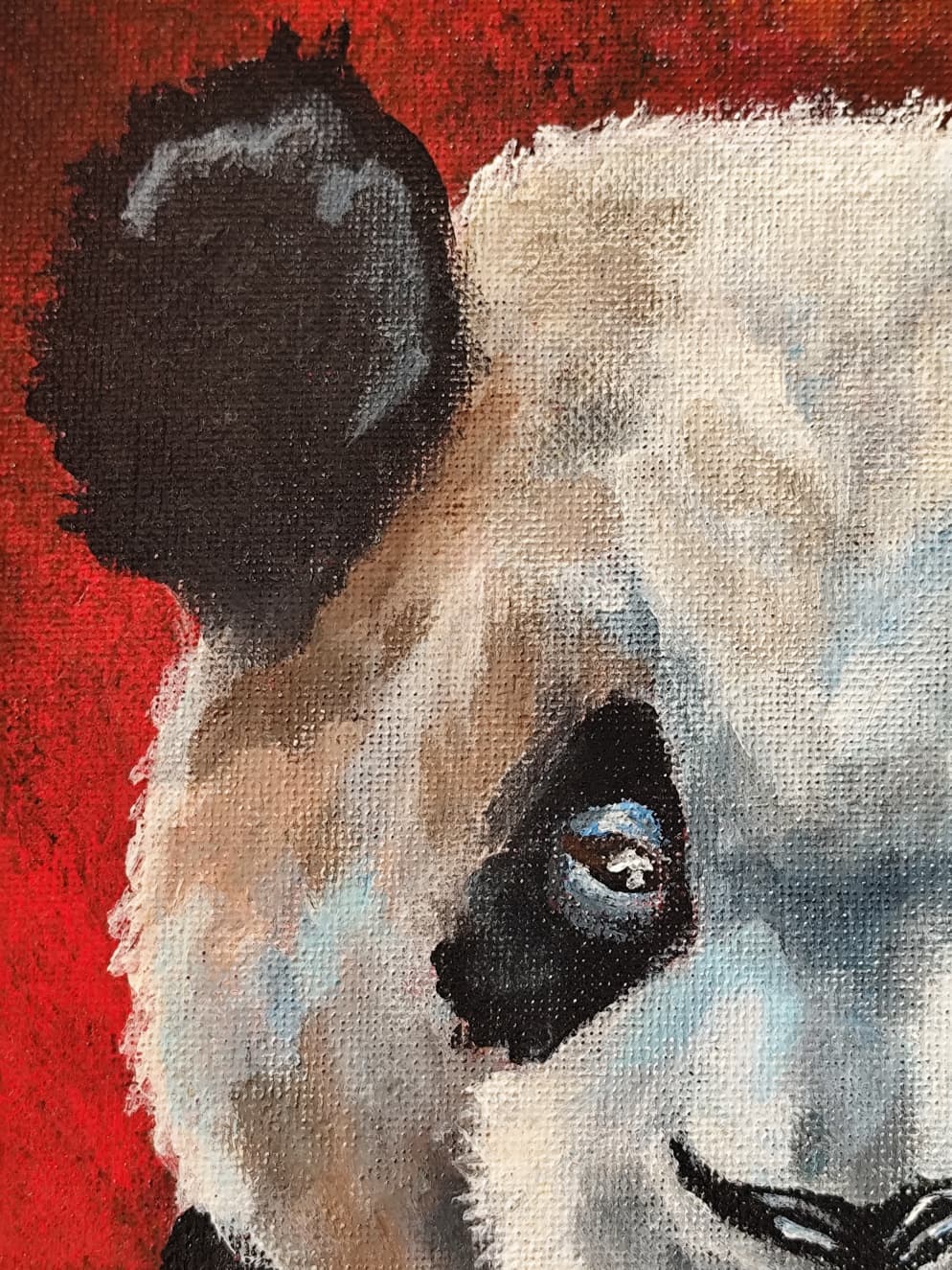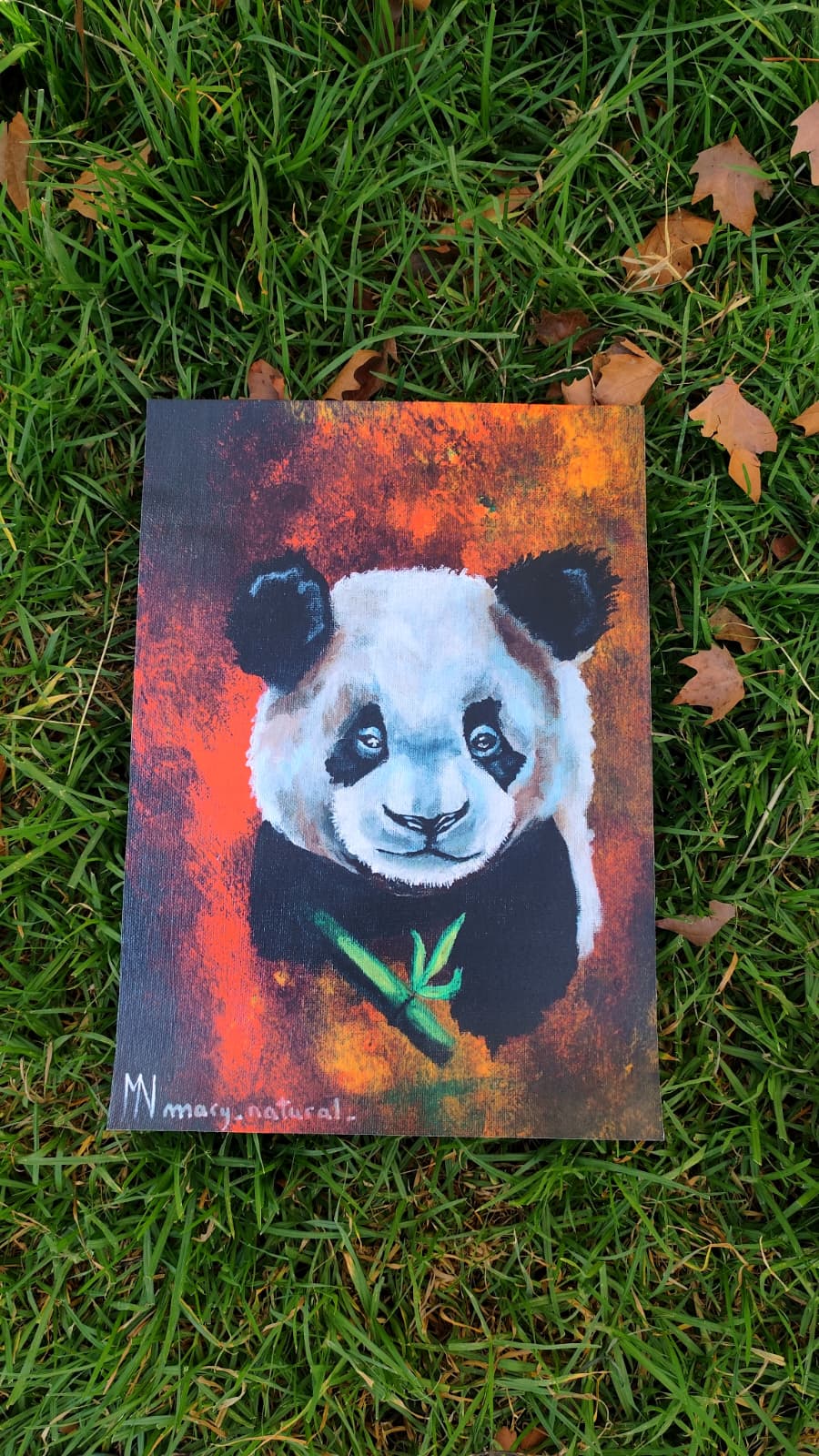 En esta lámina basada en el lienzo, quise ir más allá de la imagen tierna y entrañable con la que solemos asociar al panda. Su mirada transmite calma, pero también una presencia imponente que refleja su naturaleza salvaje y poderosa. Entre trazos y contrastes, la obra busca mostrar al panda no solo como un símbolo de dulzura, sino como un animal majestuoso que habita los bosques con fuerza y carácter propio.