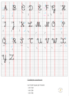 Voici un ensemble de 7 documents pour travailler la direction et le sens du tracé des lettres minuscules/majuscules et des chiffres, sur un support quadrillé à petits carreaux (type fiche Bristol).