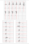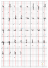 - avec les petits carreaux, afin de percevoir aussi les proportions des lettres