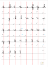 Les lettres minuscules sont classées soit par ordre alphabétique, soit par forme pré-graphique (boucles, coupes, arcades, lettres rondes et droites), toujours accompagnées des chiffres.