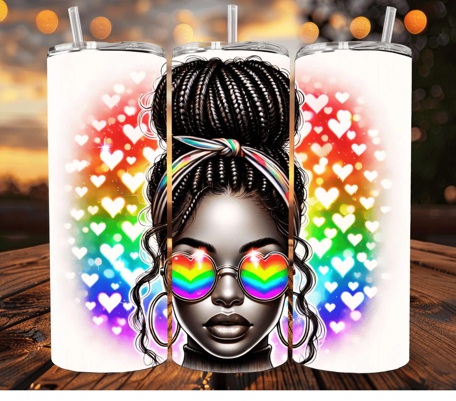 Black Woman Pride Girl Tumbler Wrap PNG Afrocentric Sublimation Design LGBTQ Shirt Mug Black Girl Clipart Digital Download Pride Celebration