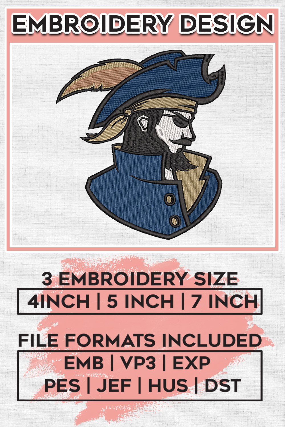 NCAA Charleston Southern Buccaneers Football Team Mascot Logo Embroidery Files, NCAA Charleston Southern Buccaneers Team Embroidery, NCAA College Football Teams, Charleston Southern Team Emroidery, 3 sizes, Machine embroidery designs, Digital Download