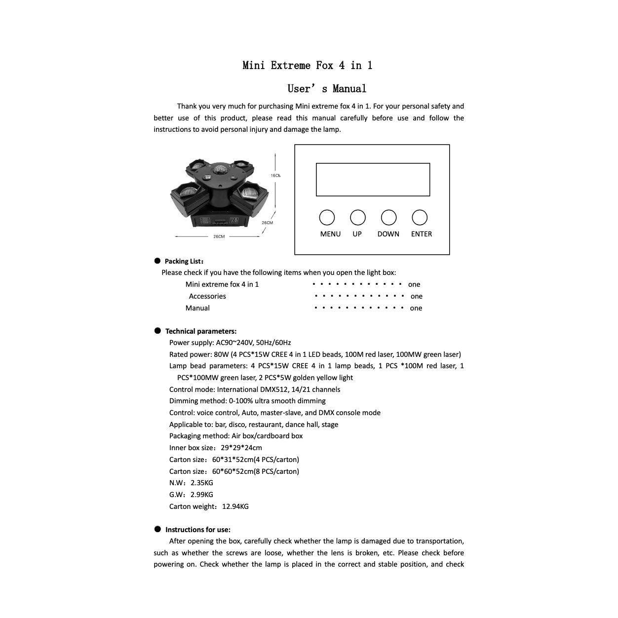 Librería para Freestyler DMX del efecto Chino "Mini Extreme Fox 4 in 1" ( 14-21CH ).