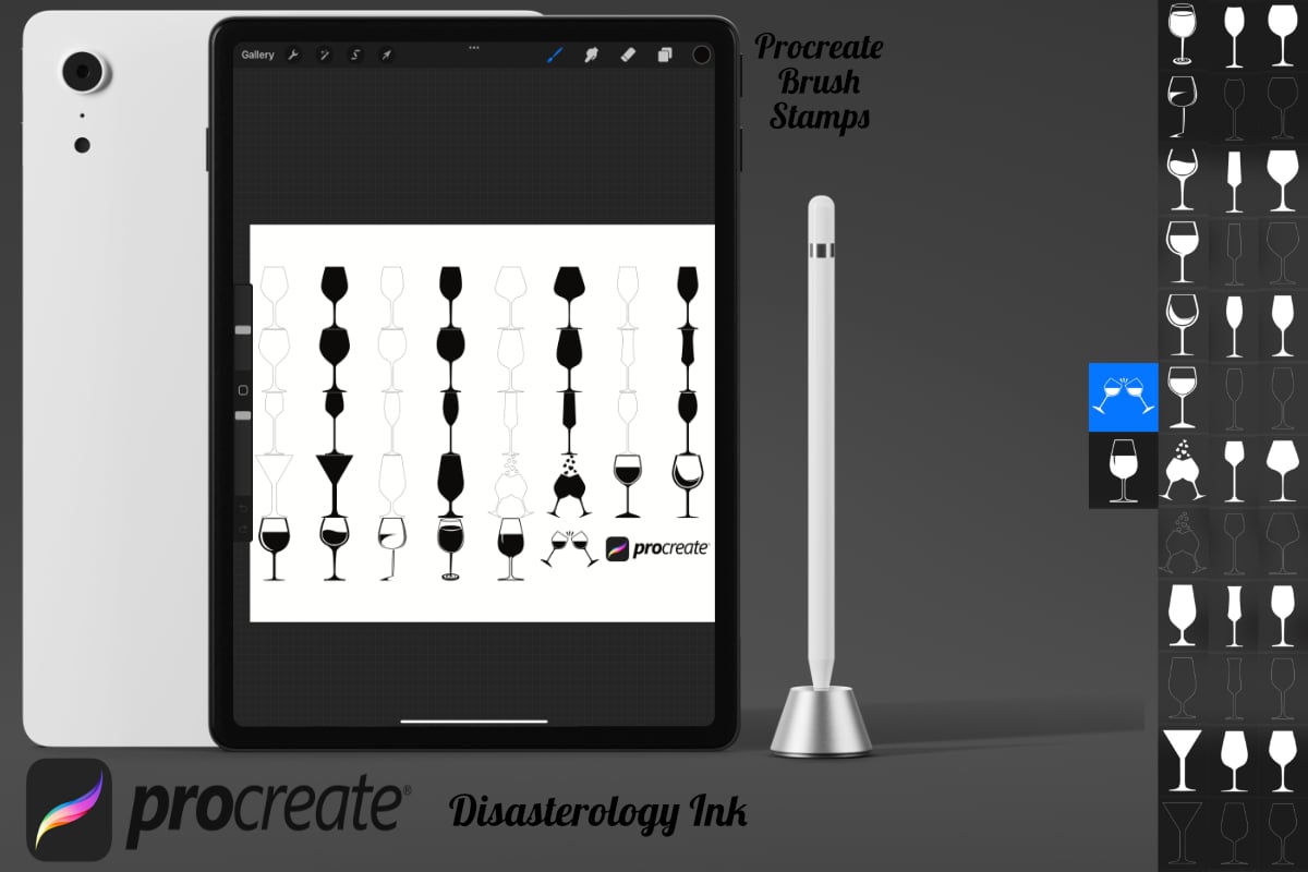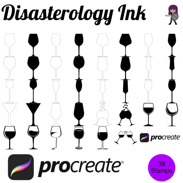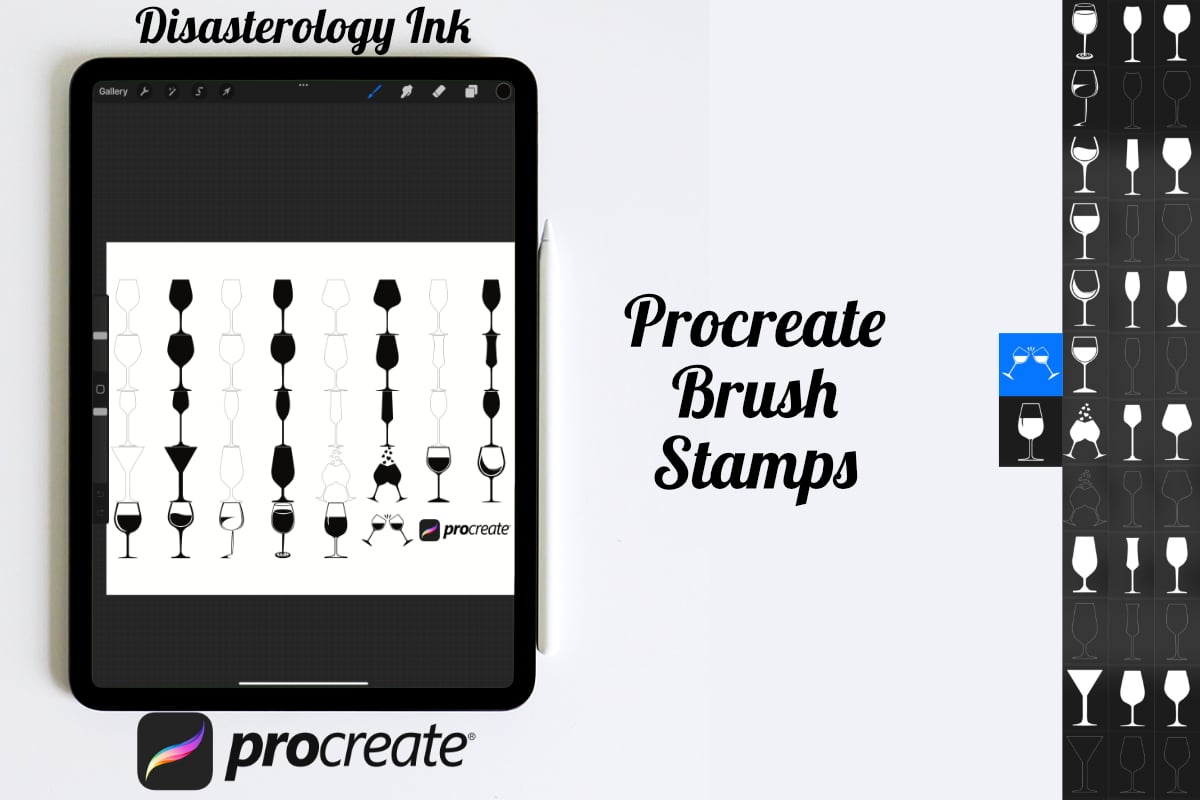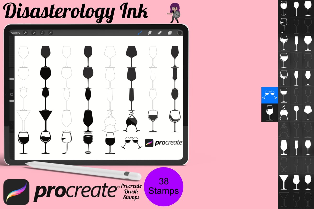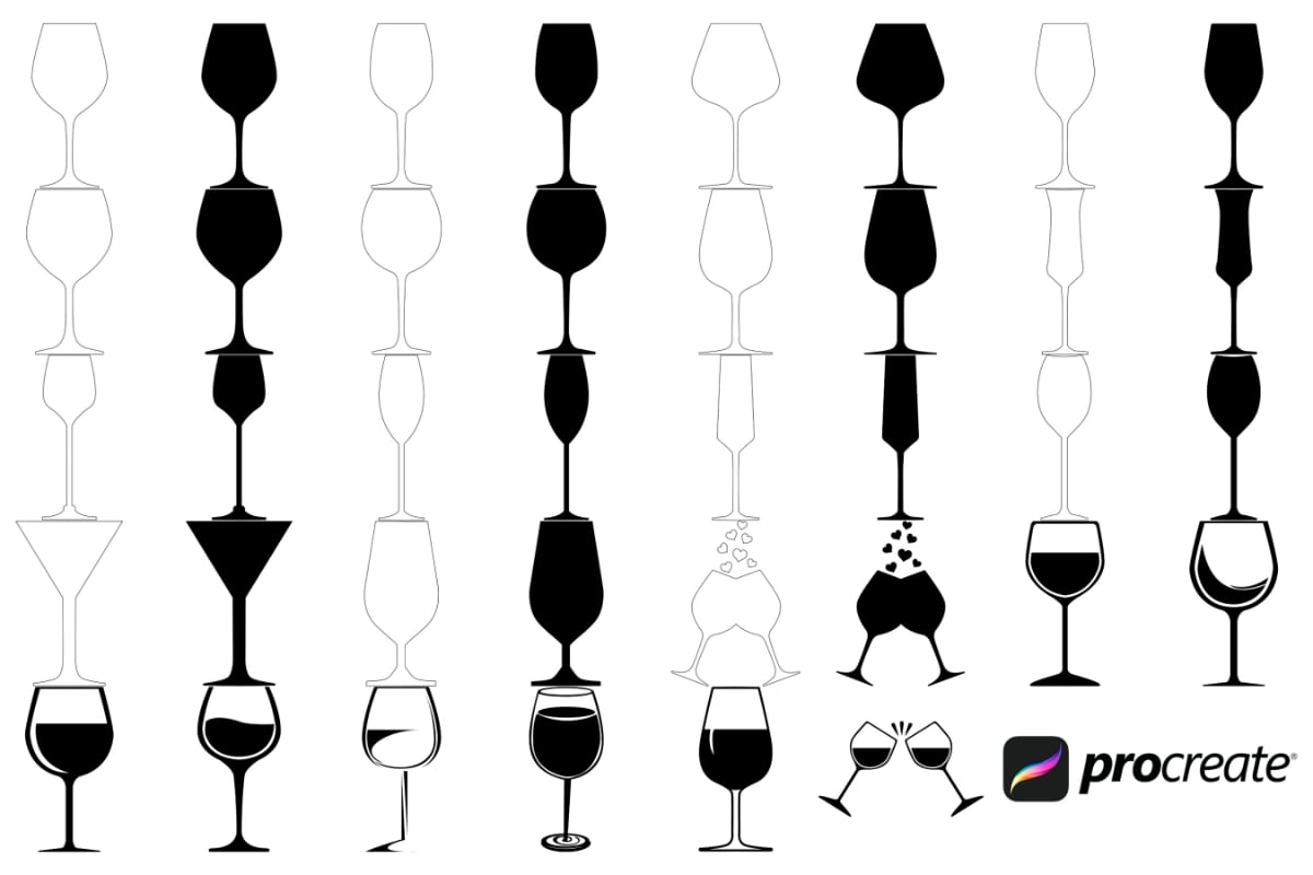 Wine Drinking Glasses Set 1 Procreate Brush Stamps, 38 Wine Glasses