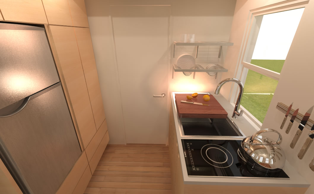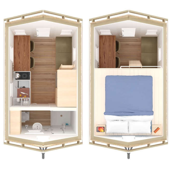 - Space Optimization: How to fit a bathroom, kitchen, living room, and a queen-size bed in less than 100 square feet.