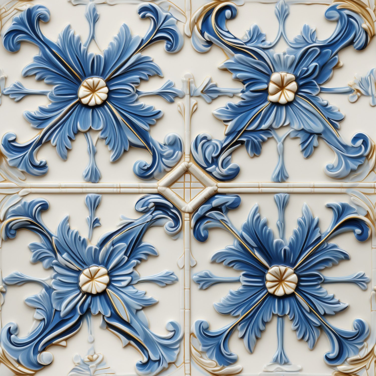 Traditional Italian Tile Set of 4 PNG Seamless Patterns.