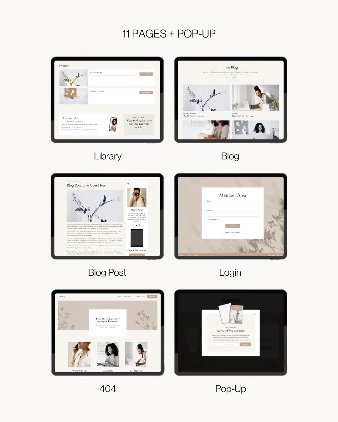 - Instant access to the Kajabi website theme, including 11 pages and custom exit pop-up