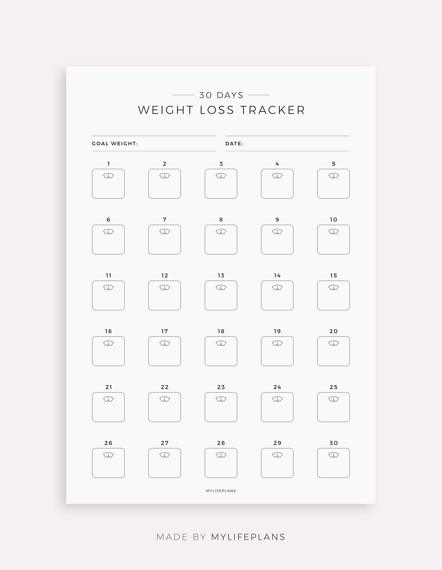 30 Day Weight Loss Tracker Template for Remarkable, Supernote, Kindle Scribe, Boox, Kobo