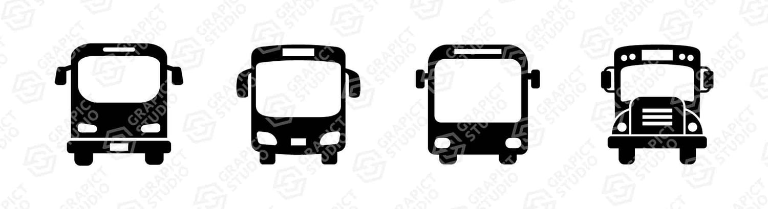 Bus icon set of 4, design element suitable for websites, print design or app. Creative vector illustration, flat glyph style icon.
