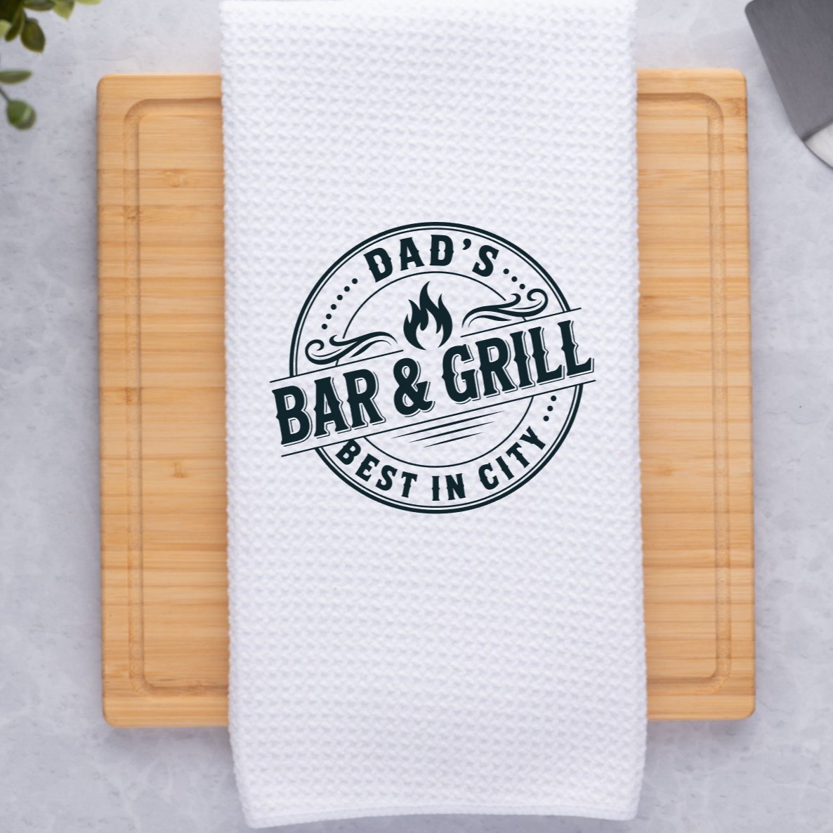 Dad's Bar And Grill Father's Day Sarcastic Kitchen Dish Towel