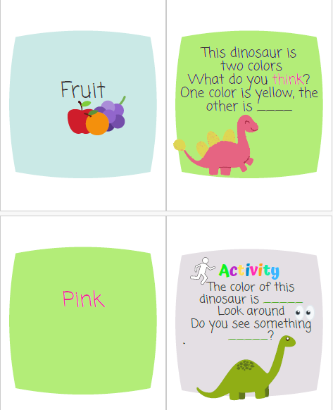 Tip! For the most fun, have your child guess the missing rhyming word before swiping or scrolling to the next page to reveal the dinosaur answer!