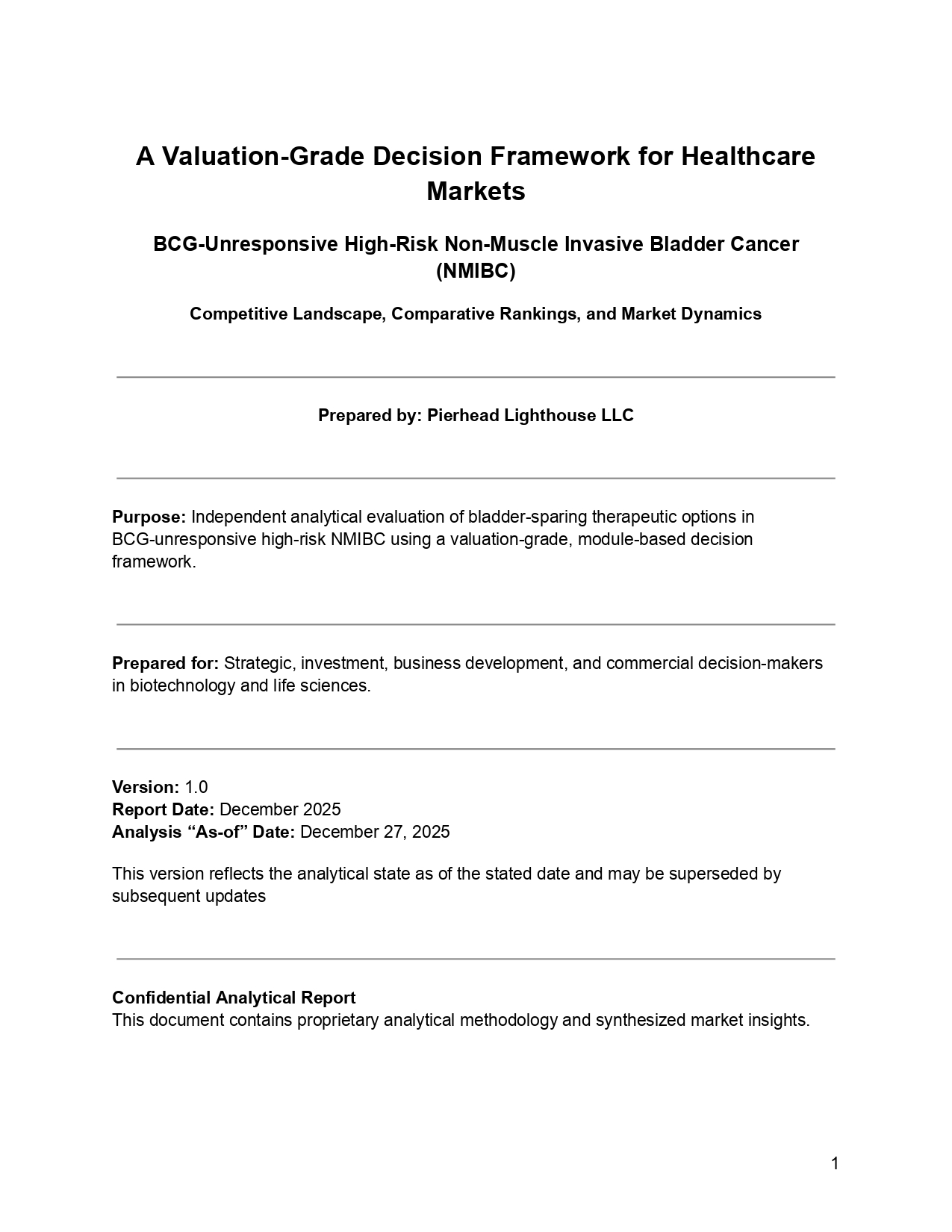 Independent analytical evaluation of bladder-sparing therapeutic options for high risk Non-Muscle Invasive Bladder Cancer (NMIBC) for market ranking and penetration. Includes Reality-Constrained, Known-Data, and Potential-Upside runs. Single-User License Only.