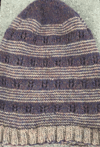 The sample was knit using 25 g each of Clematis Heather (MC) and Oregon Coast Heather (CC).
