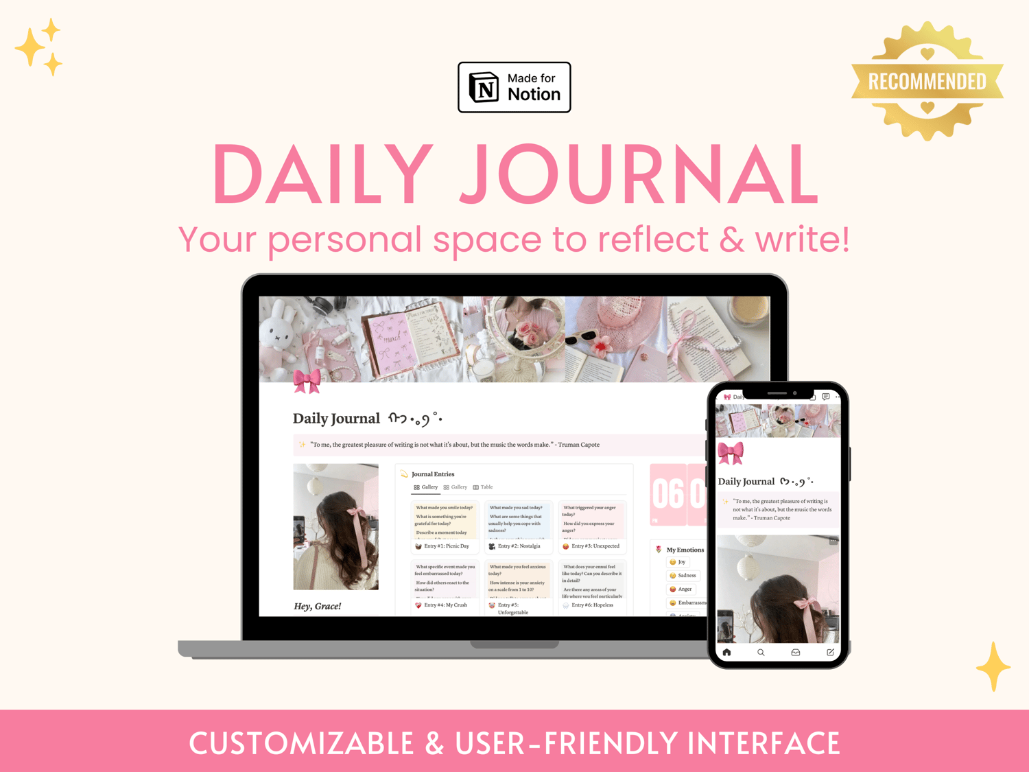 This all-in-one and simplified daily journal comes with a guide video to show you the step-by-step process of using this template.