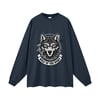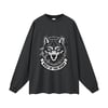 Command attention with our fierce new "Wolf of the Night" Long-Sleeve Tee . Featuring a striking, highly detailed graphic of a snarling wolf's head framed by barbed wire and a banner, this shirt embodies untamed spirit and raw intensity.