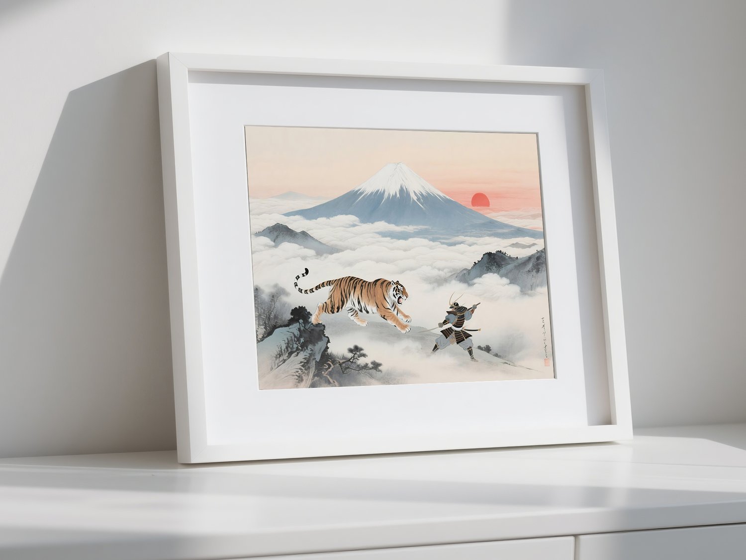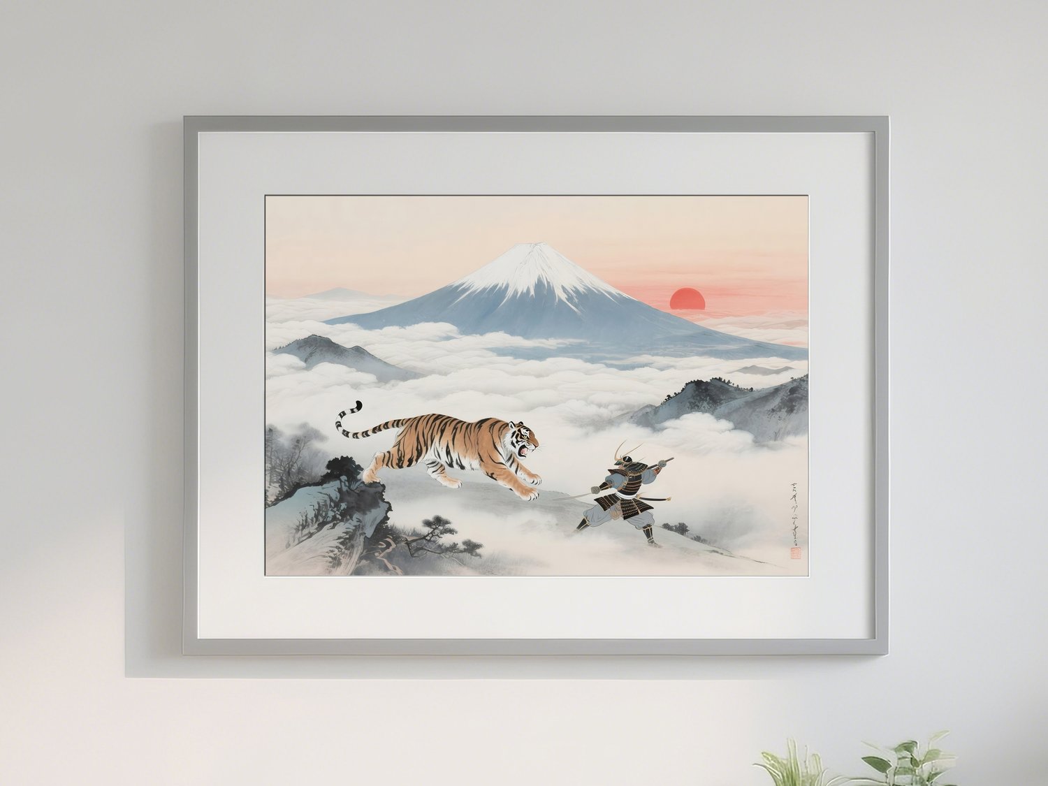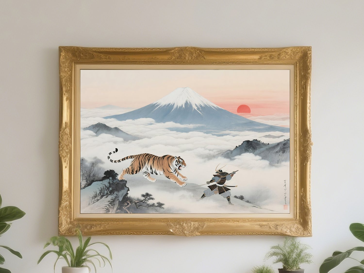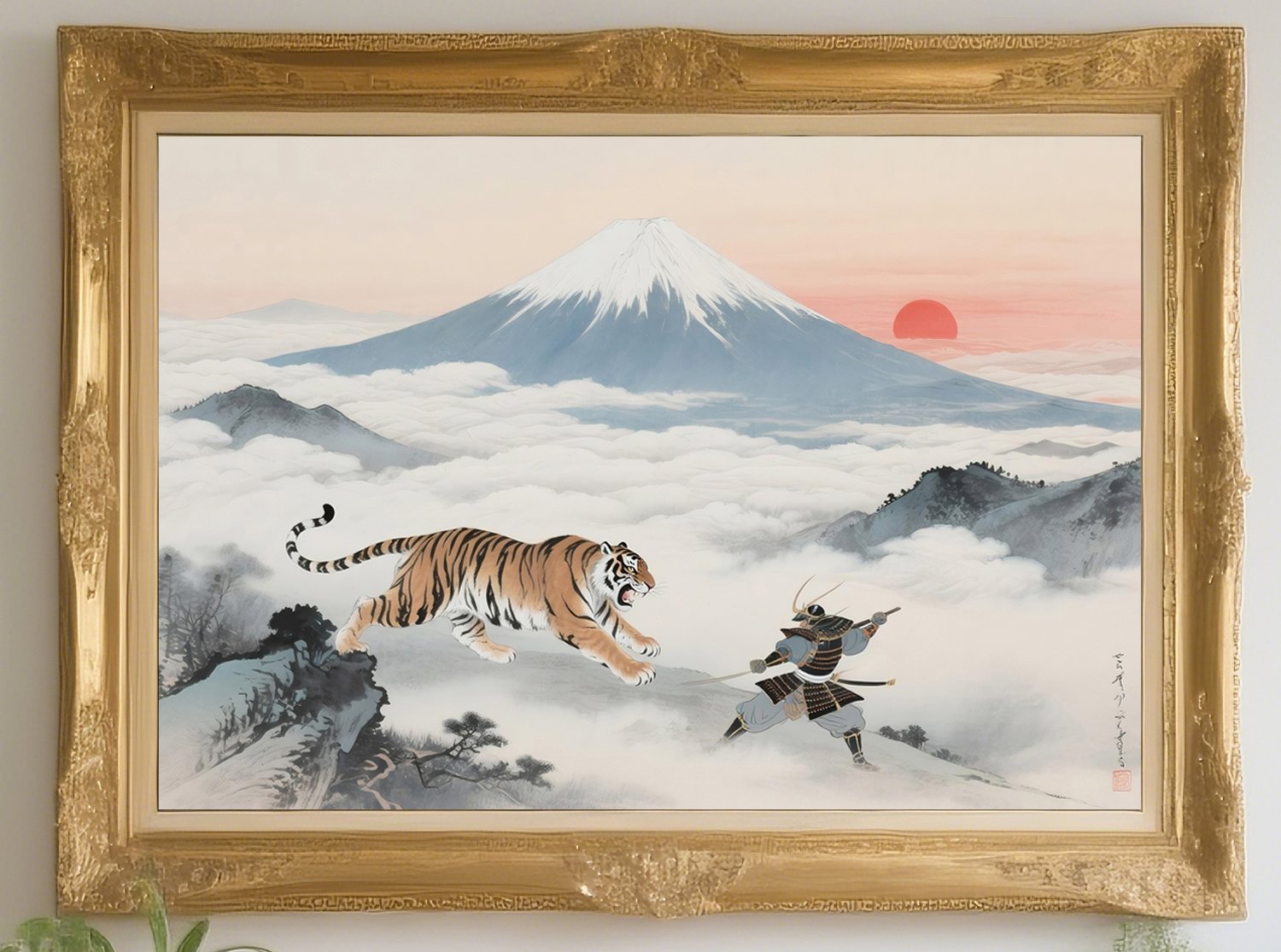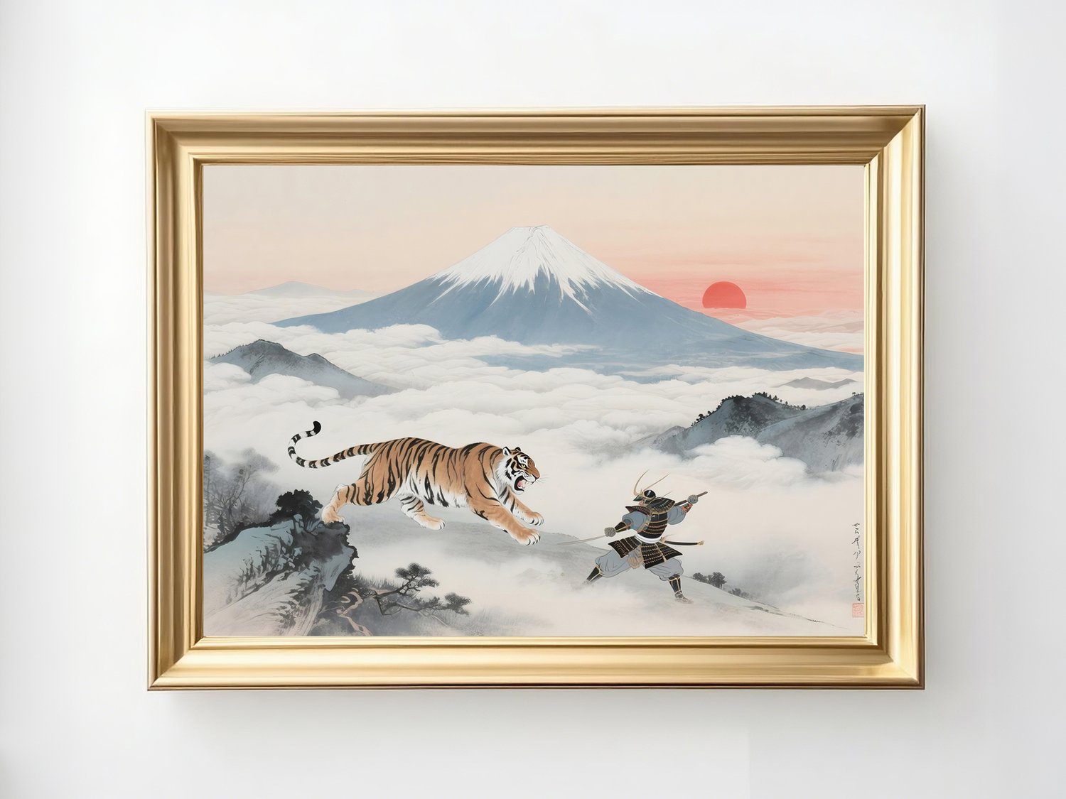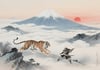 uk004 Samurai and Tiger beneath Mt. Fuji Sunrise | Feng Shui Art of Strength & Protection