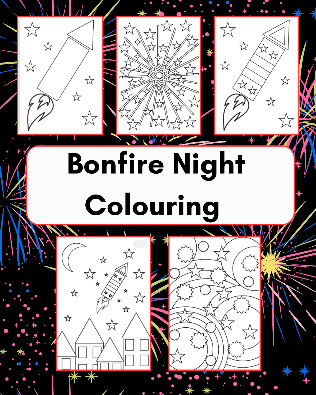 Can be used within Bonfire Night and Autumn themed lessons or playtime colouring activities.