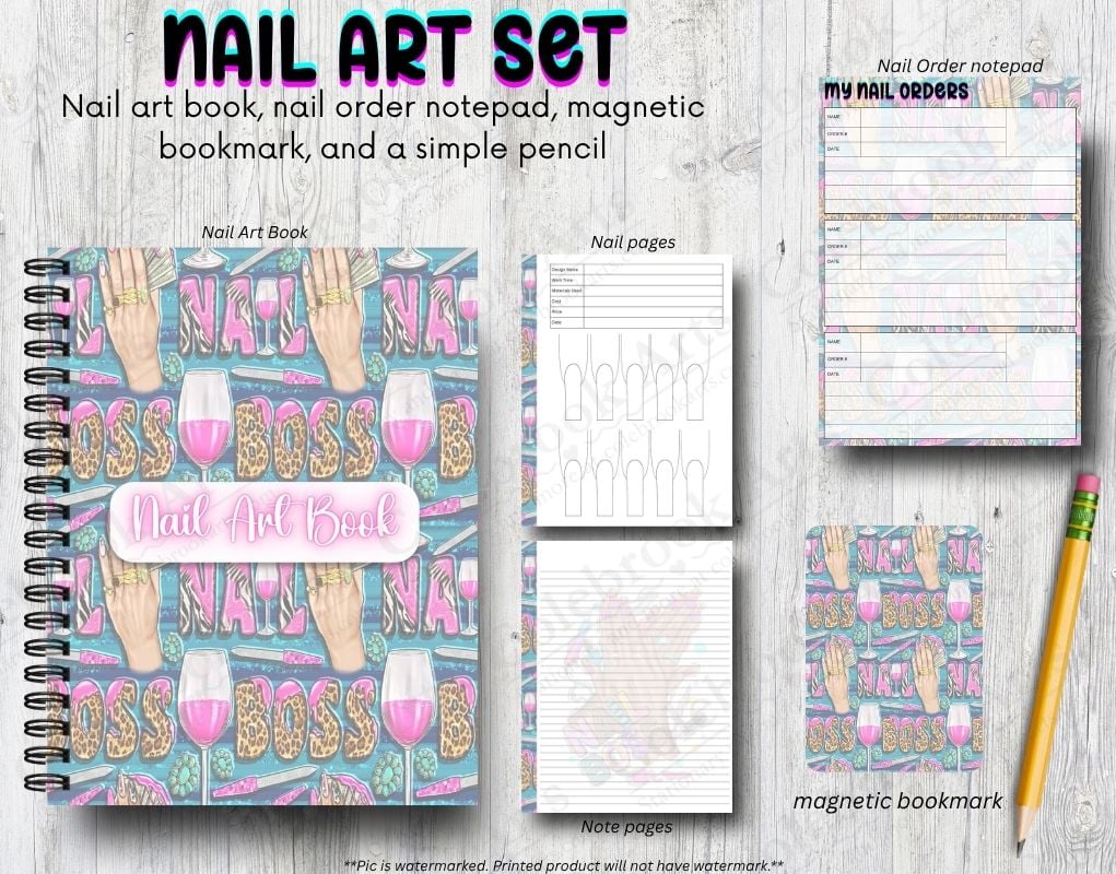 A beautifully coordinated set designed to keep your ideas flowing and your orders organized. Whether you're sketching new nail designs or managing client appointments, this bundle brings creativity and practicality together in one charming package.