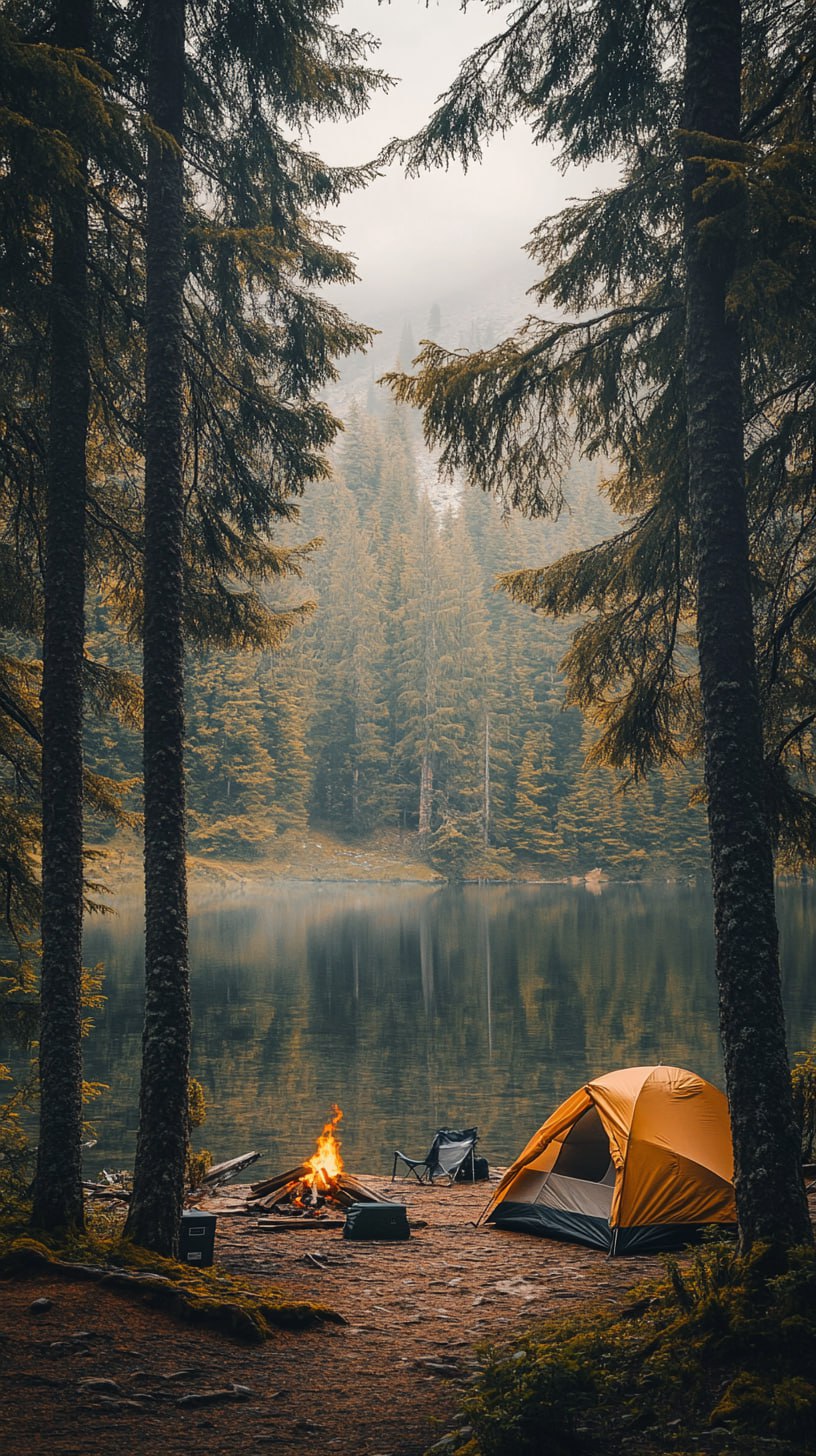 Cozy Lakeside Campsite – Serene Nature Photography